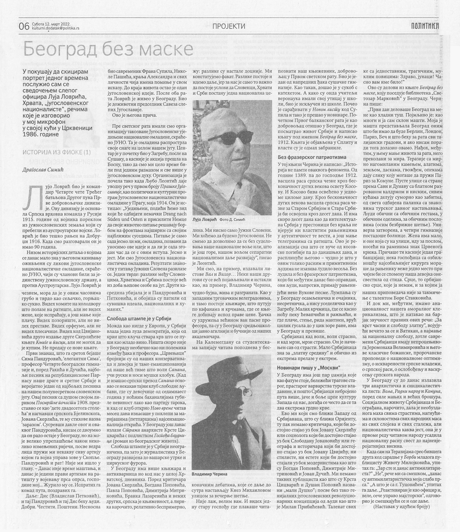Kulturni dodatak Politike, subota, 19. mart 2022.