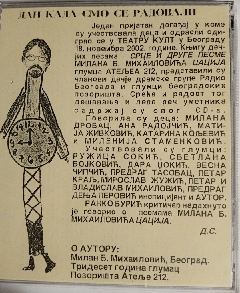 Prvu zbirku dečijih pesama Caci je objavio 2003. godine. Predstavljanje knjige i sadržaj promocije snimljen je na CD.
