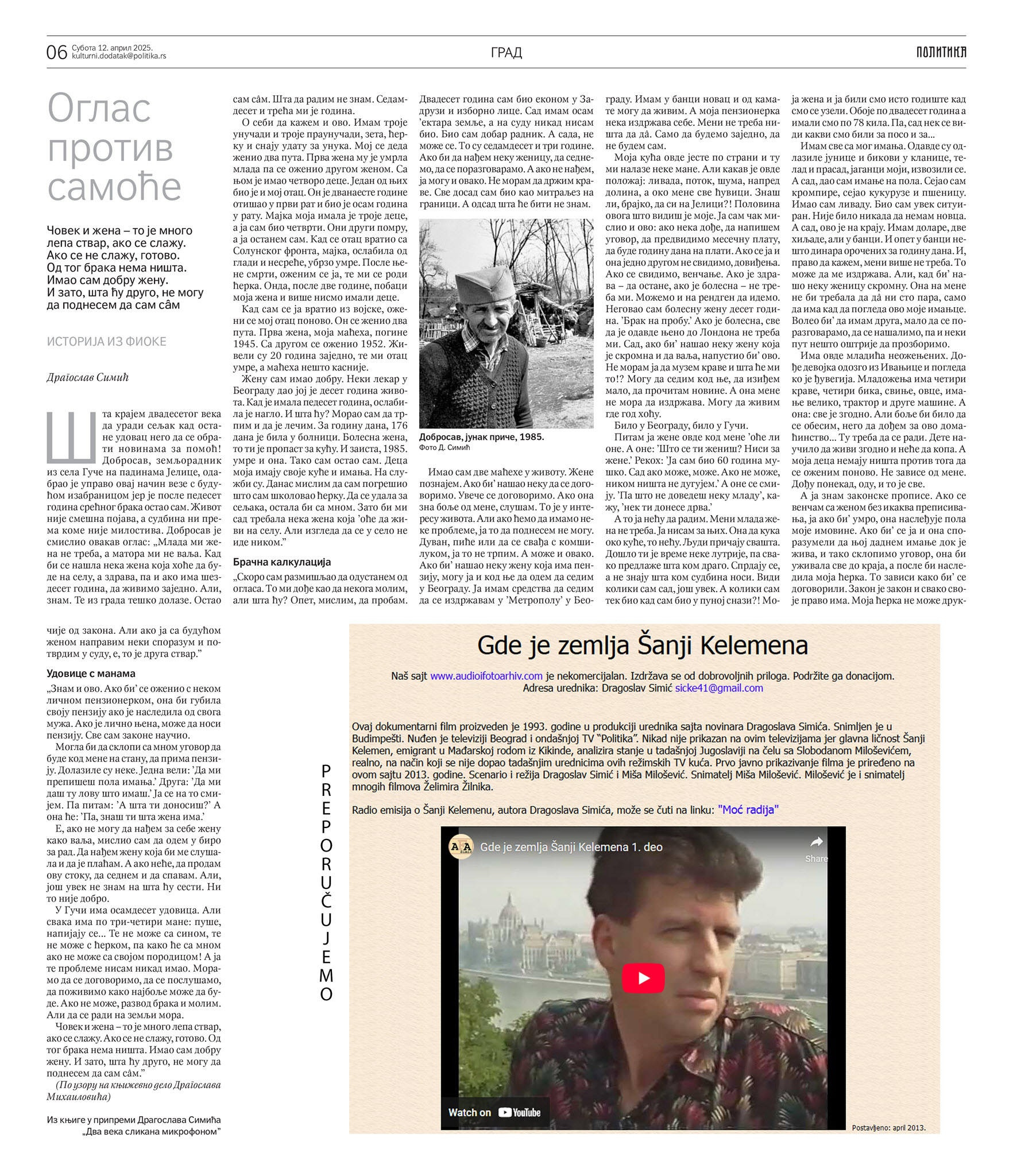 /Politika, Kulturni dodatak, 12. april 2025/.