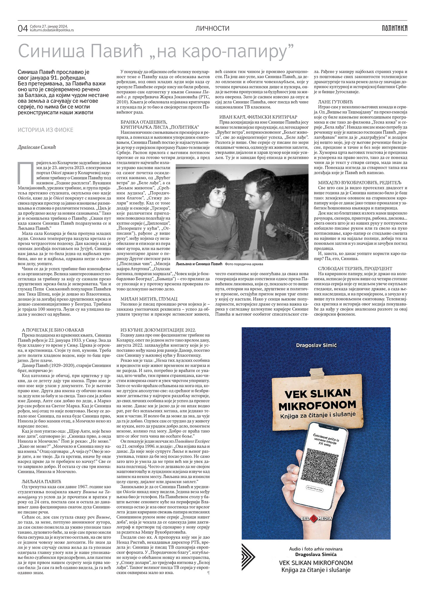 Tekst objavljen u Kulturnom dodatku „Politike“ 27. januara 2024. Autor Dragoslav Simić