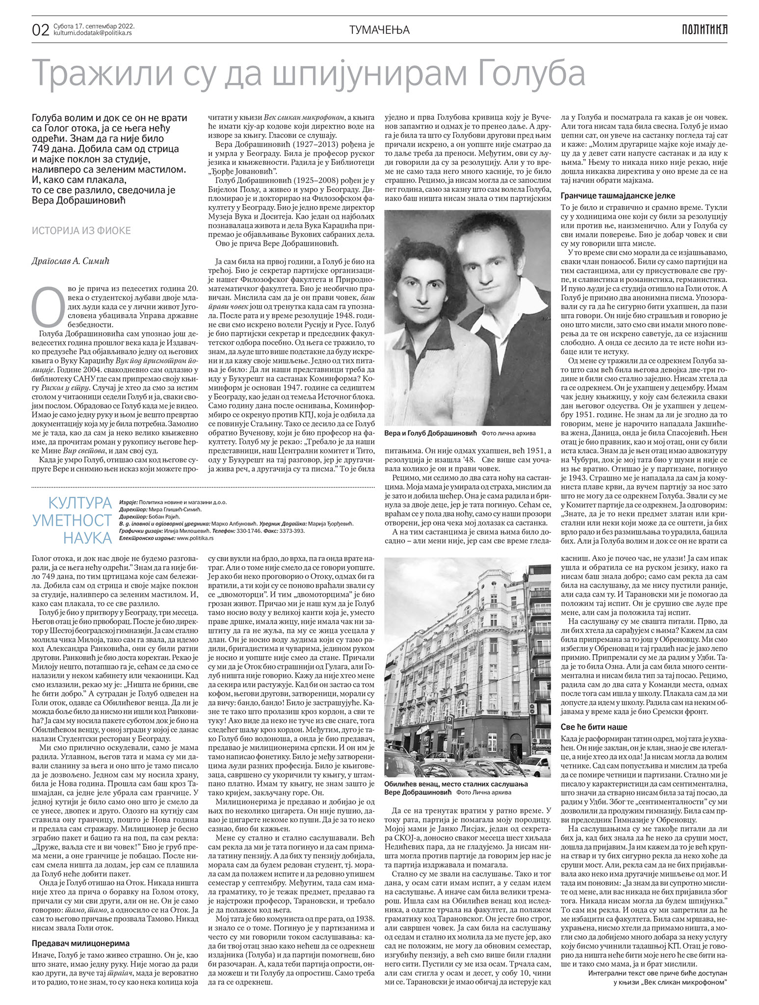 Politika je u svom kulturnom dodatku od subote 17. septembra objavila ovaj tekst iz knjige "Vek slikan mikrofonom" Dragoslava Simića. Knjiga se može naručiti kod autora sicke41@gmail.com