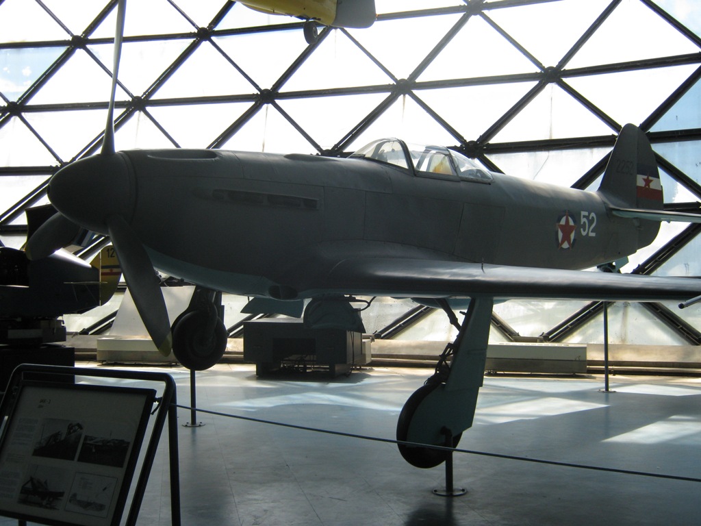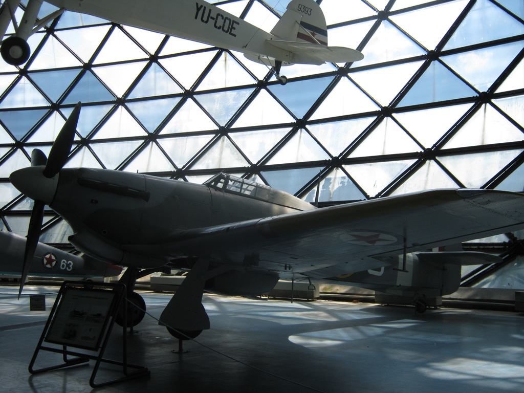 Hoker Hariken - britanski lovački avion koji je već posjedovala Kraljevina Jugoslavija, a kupljena je licenca za domaću proizvodnju. U sjeni Spitfajera ipak je odigao značajnu ulogu u Bitci za Britaniju, a glasio je za robustan, pouzdan i jednostavan avion koji je bilo lako popraviti i vratiti u borbu. Izložbeni primjerak imao je preko 900 borbenih zadataka i bio je stacioniran na otoku Visu za vrijeme rata. | Ovaj primjerak Spitfajera Mark V jedini je u svijetu koji ima filter protiv prašine za tropske uvjete. Nema tko nije čuo za taj avion koji je personifikacija svega britanskog (kvaliteta, otmjenost I elegancija). Napravljen 1943., a u muzej je došao 1961 godine. Pokretač ove letelice je naravno Rolls Royce motor. |