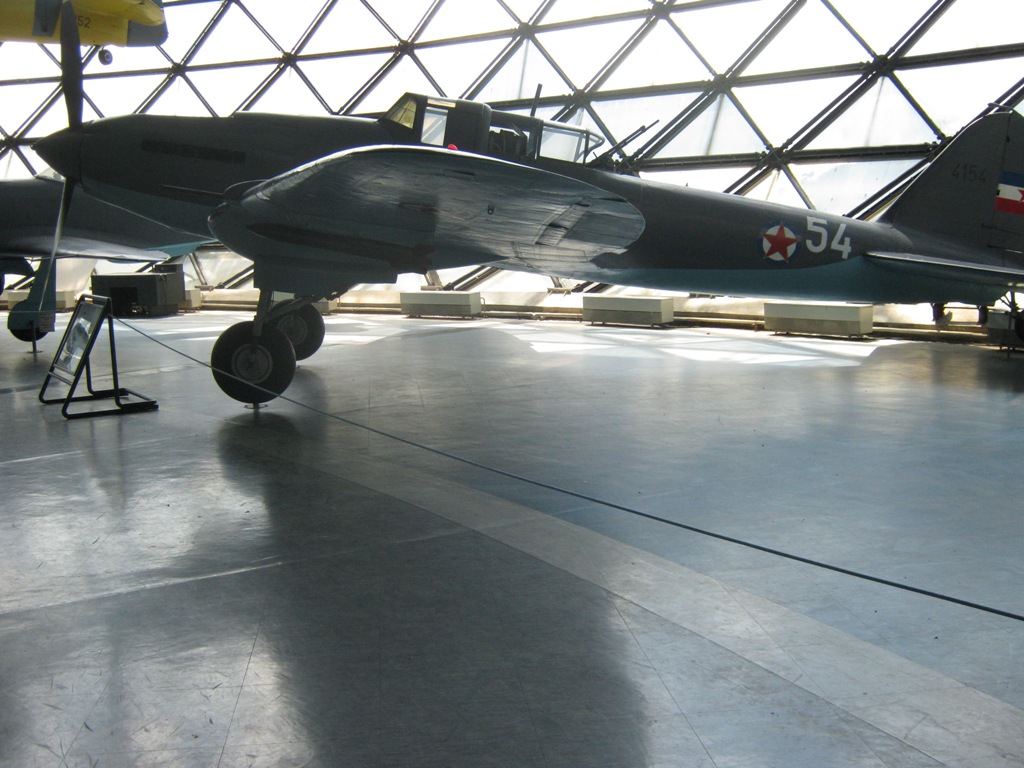 JAK-3 konstruktora Aleksandra Jakovljeva jedini je autentični sačuvani primerak u svetu. Prvi primjerci kod nas korišteni su na Sremskom frontu, a nosili su još sovjetske oznake. Izložbeni primerak je proizveden 1945. godine tvornički broj 8545. Postojala je i varijanta sa jačim motorom koji je ujedno postavio brzinski rekord za sovjetske klipne avione (745 km). | Šturmovik je je dizajnirao Sergej Iljušin, a proizveden je u više primjeraka nego bilo koji avion iz 2. svj. rata, ukupno 36,163 primjeraka. Imao je nadimak tenk sa krilima i pokazao se jednim od najefikasnijih strojeva u ratu. U muzeu JV II-2M model je izložen, a kod nas je bilo 213 takvih tipova u upotrebi. |