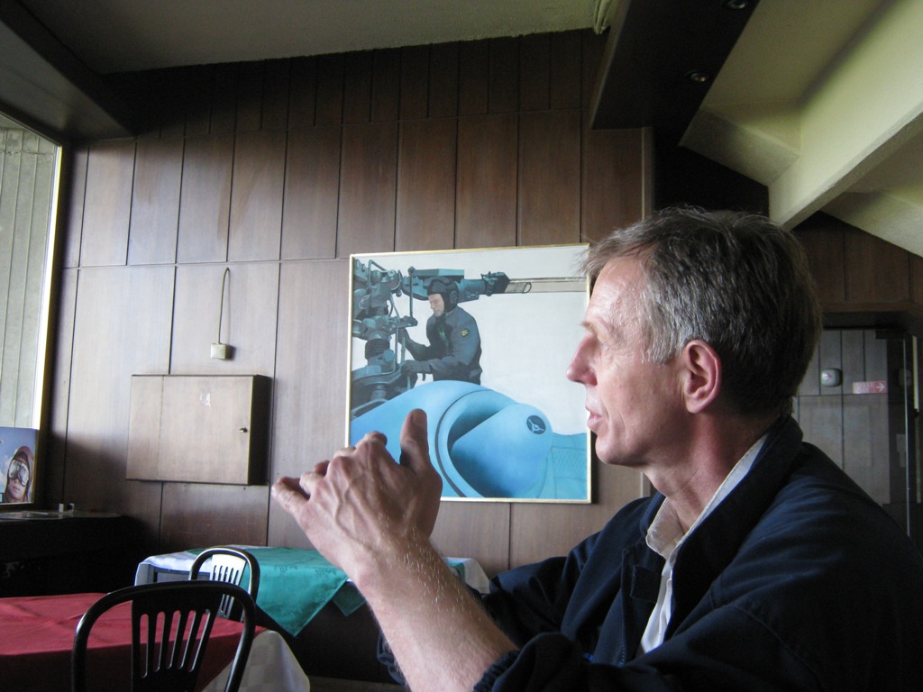 Ovako smo upoznali Zorana Radojevića direktora Muzeja jugioslovenskog vazduhoplovstva. Ustvari pitali smo: „Majstore, šta radite gore, ~ mada smo videli da namešta korpu balona za letenje. “A ko ste vi, ~ pitamo dalje... | Zoran Radojević direktor Muzeja jugoslovenskog vazduhoplovstva sa onih merdevina pozvao nas je da popijemo piće u restoranu Muzeja. O čemu smo razgovarali? Pa o avionima, naravno. Ja sam kao radoznao čovek samo slušao, ali me je zaista prijatno iznenadio Fabian svojim poznavanjem istorije avijacije i aviona. Bio je egal sa direktorom. Šta hobi može da načini od čoveka! |