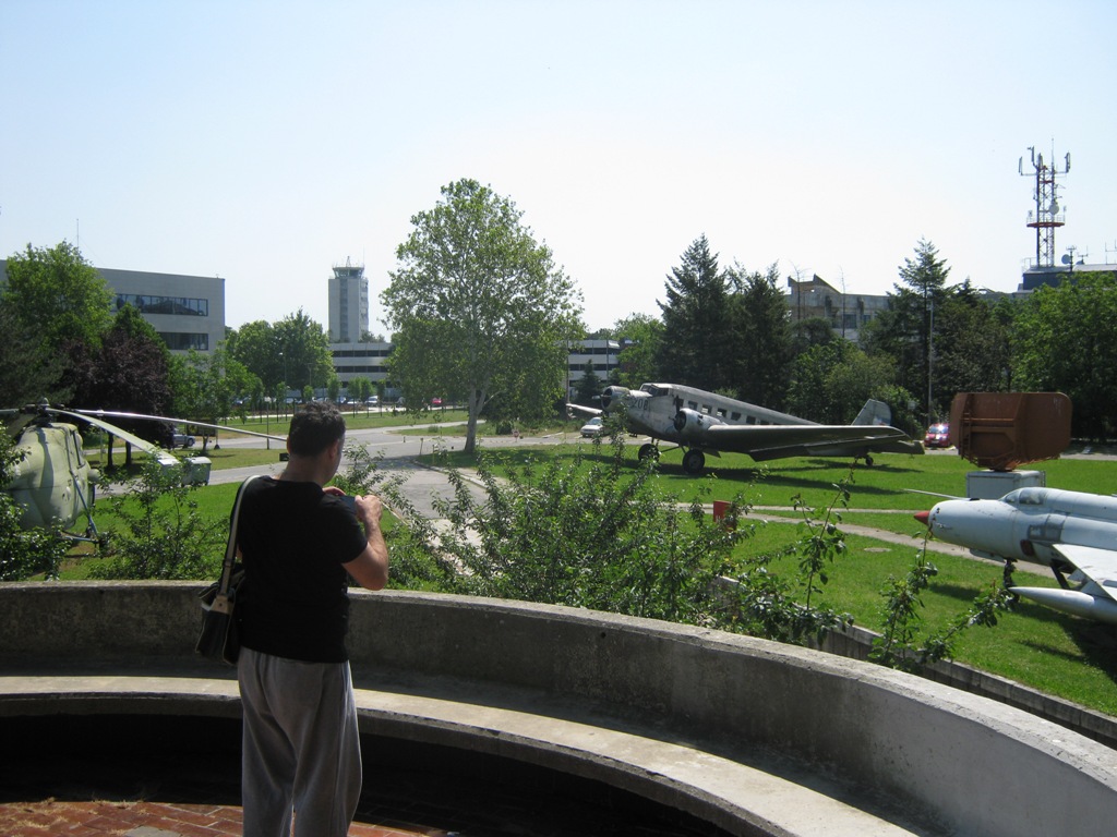 Pogledom na vanjski dio muzeja dominira tromotorni JU-52, zrakoplov Nijemca Huga Junkersa koji je služio civilnim putnicima, a vojska i padobrankse postrojbe su ga koristile za vrijeme 2. svj. rata, a ostao je dugo u upotrebi i nakon rata. Preostali primjerci se koriste u švicarskim Alpama za panoramsko letenje. | Bora Čorba peva: Avione slomiću ti krila... Ali ova gomila aviona, nekadašnjih letilica, čeka dobru volju donatora da bude restaurirana i da se takođe nađe u postavci muzeja. Za sada su na čekanju „ispred vrata“. I o tome nam je govorio istoričar umetnosti i zaljubljenik u avione, direktor Muzeja jugoslovenskog vazduhoplovstva Zoran Radojević, onaj čovek sa merdevina koji je postavljao balon. Da, Zoran je zaista majstor, rečeno modernim žargonom koje na ovaj način iskazujemo kao poštovaoci skromnih i vrednih ljudi. |