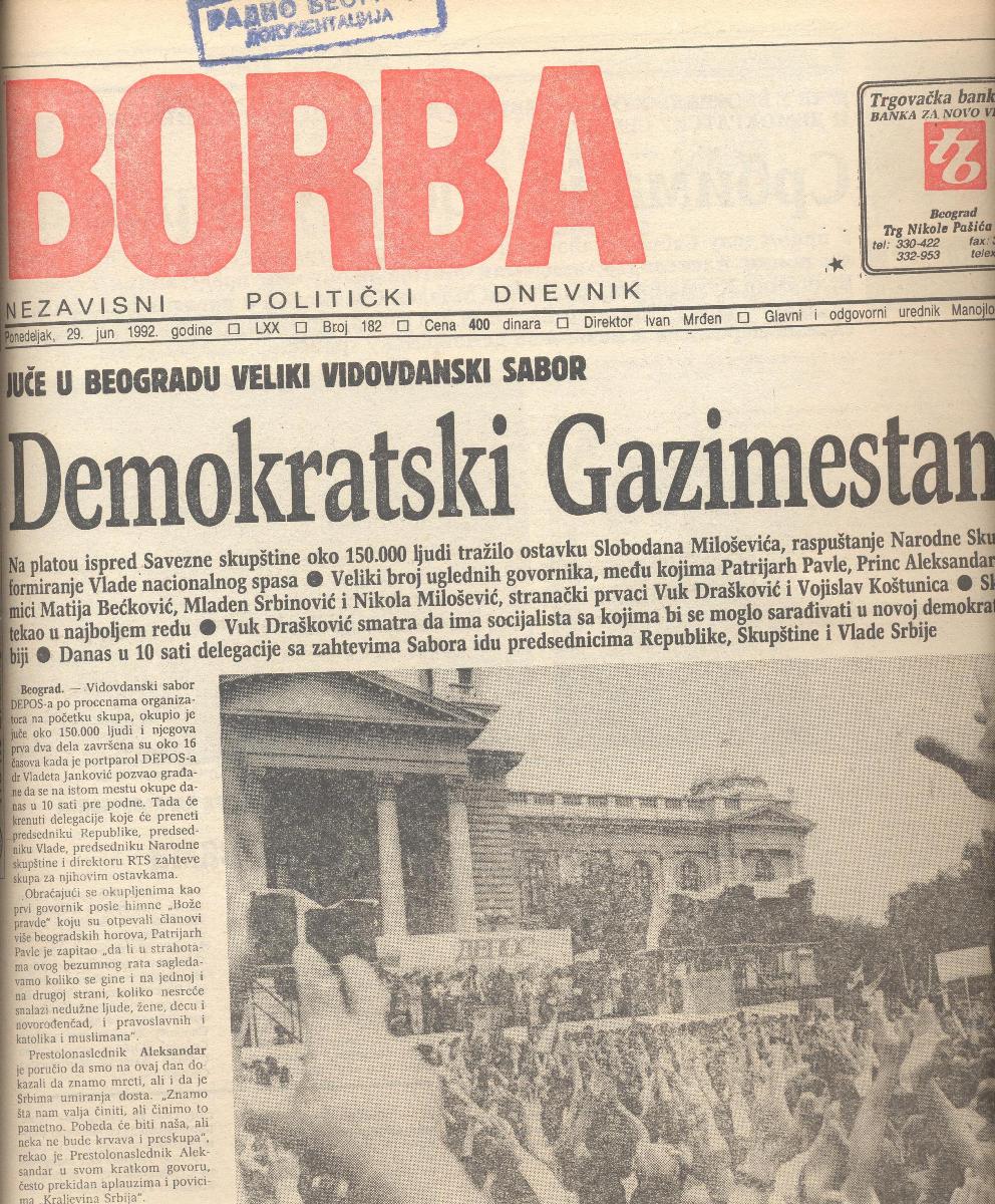 Borba, jun 1992, iz fonda Dokumentacije Radio