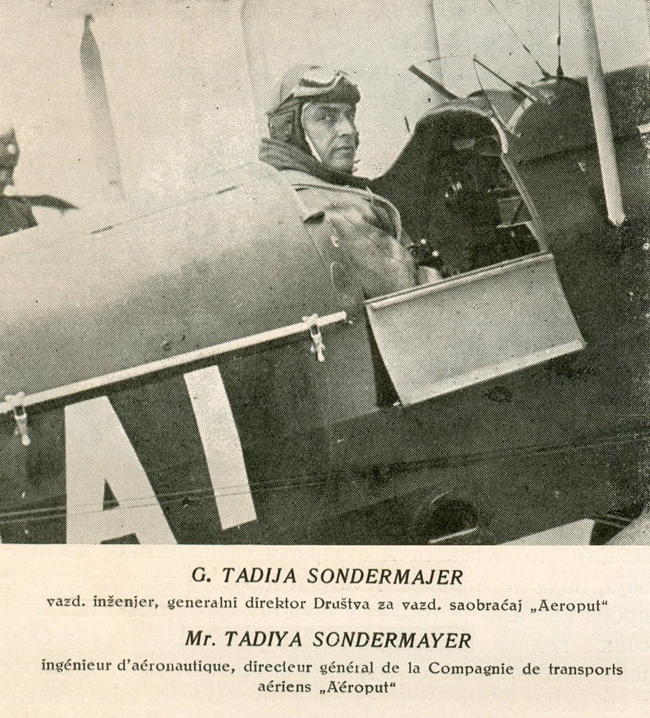 Jedan od najistaknutijih likova o kojima se malo kod nas u savremenim okvirima zna jeste pilot Tadija Sondermajer, heroj iz Prvog svetskog rata, avanturista, čovek koji je prvi u svetu sa kapetanom Leonidom Bajdakom obavio interkontinentalni let avionom od Pariza do Bombaja i natrag do Beograda 1927. Treba naglasiti da se tada još letelo bez radio veze pa je zato ovaj njihov uspeh još veći.